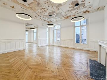 Location Bureaux Marseille 13001Location de magnifiques bureaux au 2 étage avec ascenseur d'un immeuble haussmannien sur le boulevard d'Athènes dans le 1er arrond. Entièrement rénovés avec des prestations haut de gamme, ils offrent un cadre de travail élégant mêlant charme de l'ancien et modernité: moulures conservées, sols en résine et parquet en point de Hongrie, goulotte périphérique intégrée pour courants faibles et forts, climatisation réversible et anneaux lumineux dont l'intensité et la couleur sont ajustables. A moins de 200 mètres de la gare Saint-Charles et à proximité immédiate de toutes les commodités, ces bureaux bénéficient d'un emplacement stratégique particulièrement recherché. Ils se composent de 2 open spaces de 37 et 40m2 (4/6 postes), de 5 bureaux entre 16 et 26m2 (1/3 postes), de deux espaces sanitaires dont un est équipé d'une douche, d'un espace restauration avec cuisine ainsi que de caves en sous-sol. L'ensemble constitue une opportunité rare pour une entreprise