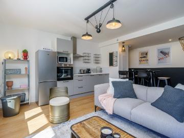 Au sein d’une maison de ville, ce charmant appartement de 45 m², complété par une mezzanine de 7 m², offre un cadre de vie agréable et serein, à deux pas de Notre-Dame-de-la-Garde, des commerces du quartier Vauban et des transports en commun. Le séjour, baigné de lumière, s’ouvre sur un petit îlot calme et sans vis-à-vis, assurant une parfaite tranquillité. Entièrement rénové en 2015, le logement comprend une vaste pièce de vie avec salon et cuisine ouverte entièrement équipée, une chambre avec un lit double (140 cm), une mezzanine ouverte sur le salon accueillant également un lit double (140 cm), ainsi qu’une salle de bain avec WC intégré. BUS 49 arrêt Fort du Sanctuaire